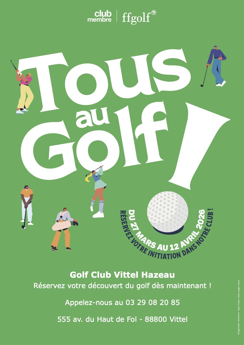 Dans le cadre de l'opération nationale « Tous au golf » portée par la ffgolf, le Golf de Vittel Hazeau ouvre largement ses portes à toutes celles et ceux qui souhaitent découvrir le golf dans un environnement accueillant et verdoyant.